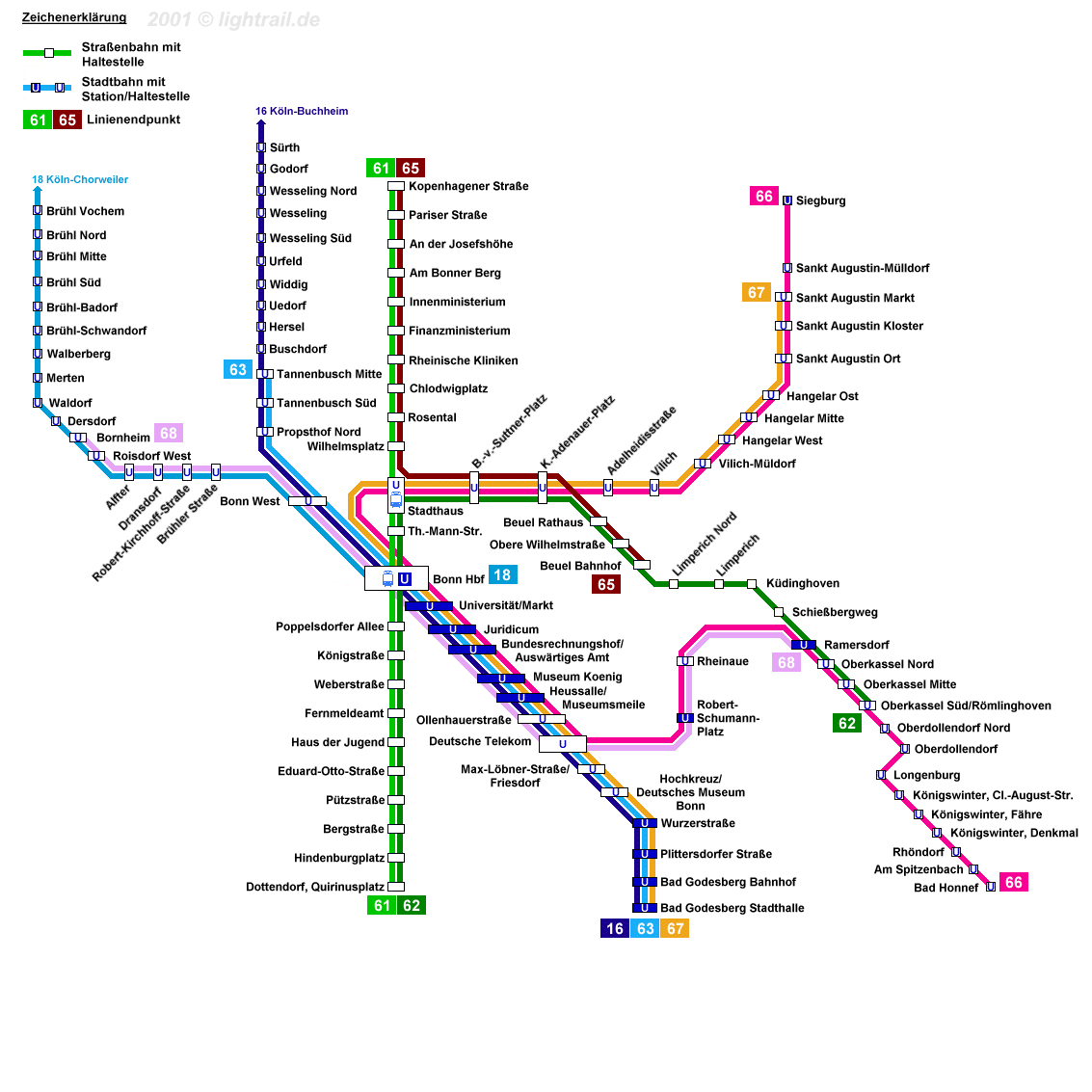 Das Bonner Straßenbahn- und Stadtbahnnetz seit Herbst 2000
