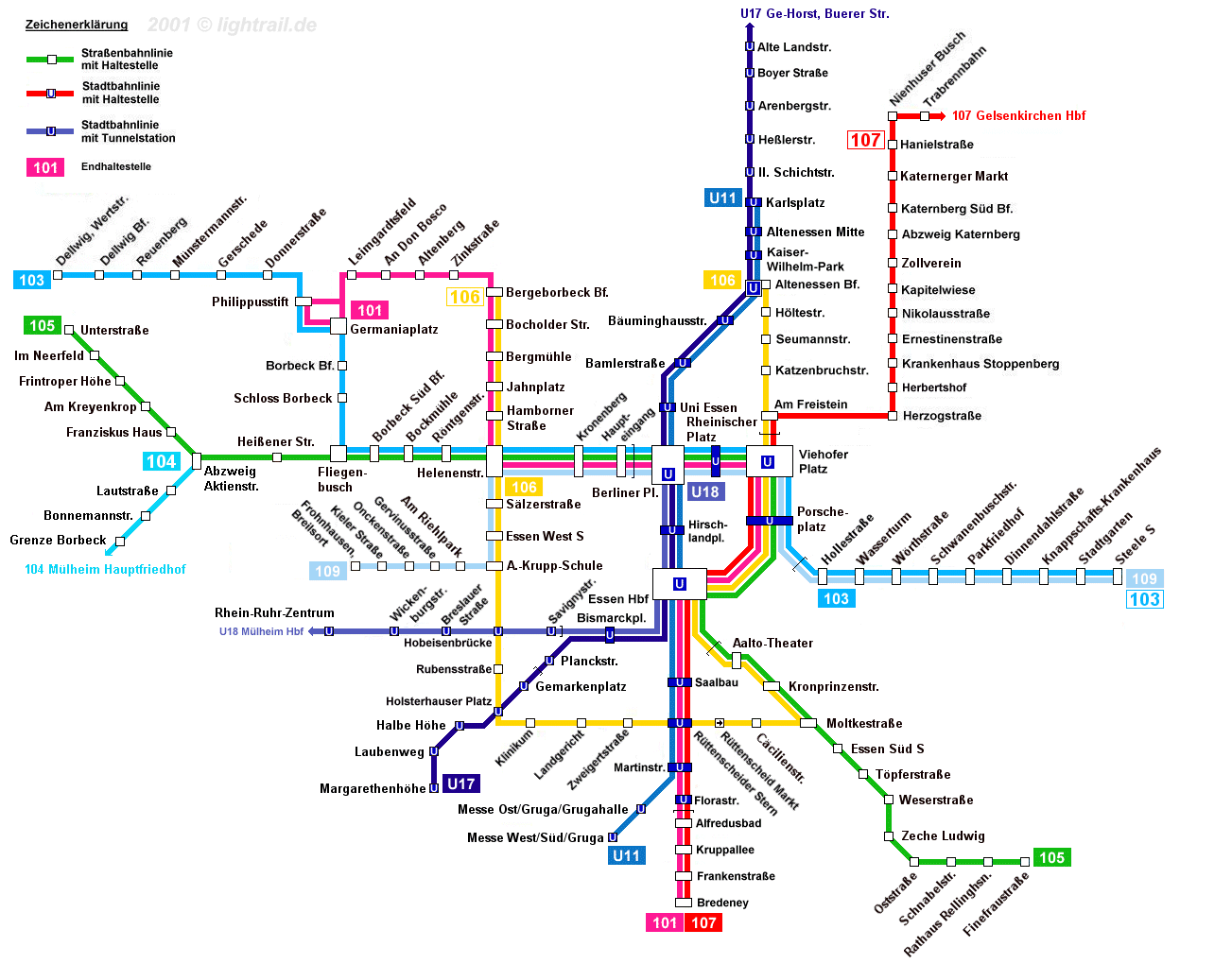 Das Essener Straßenbahn- und Stadtbahnnetz 2004 Zum 4. Juli 2004 wurde die U17 über Fischerstraße hinaus bis Buerer Straße verlängert. Der Südast ist bis Margarethenhöhe inzwischen auch wieder voll in Betrieb