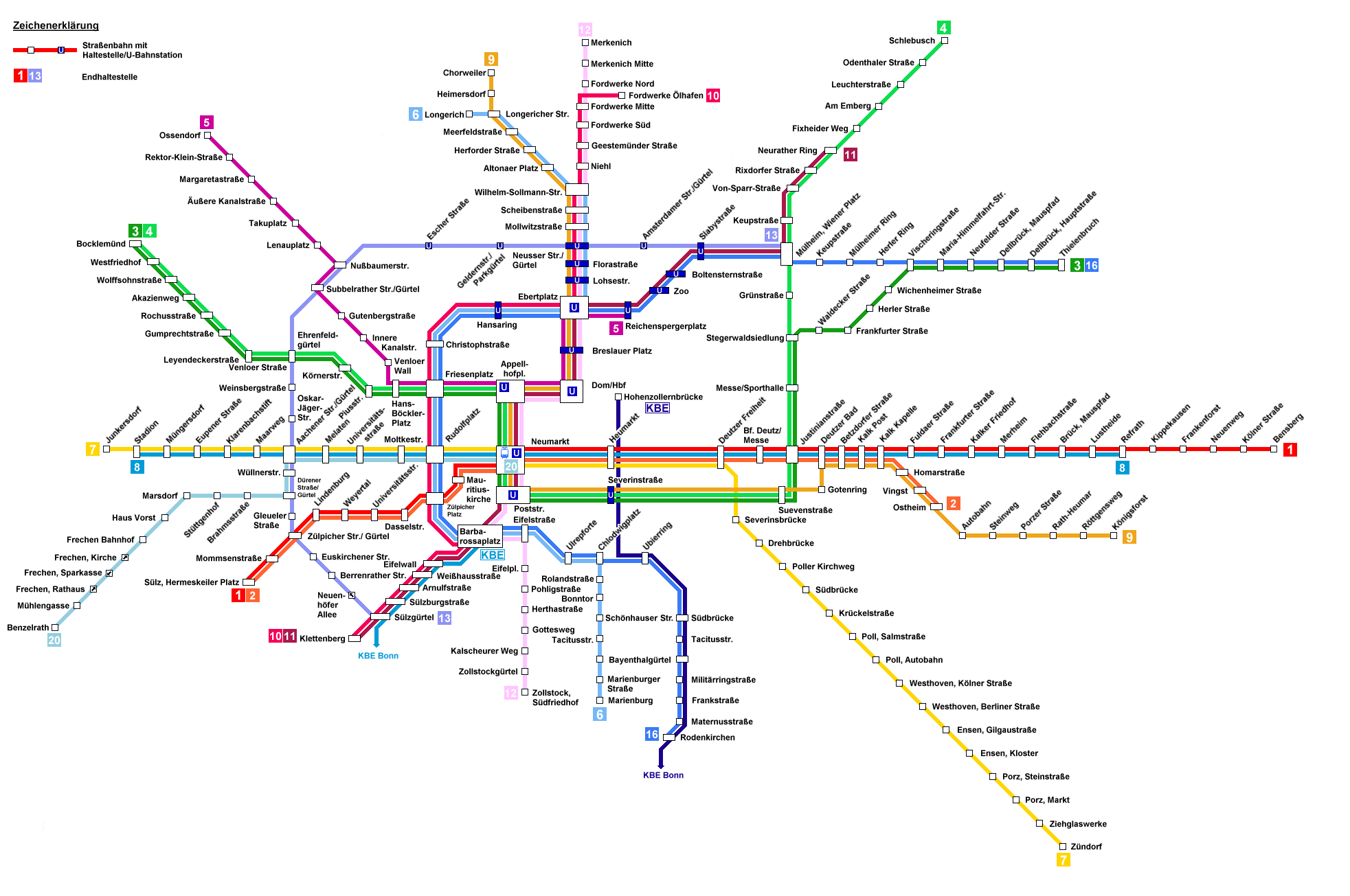 Das Kölner Stadtbahn- und Straßenbahnnetz 1975