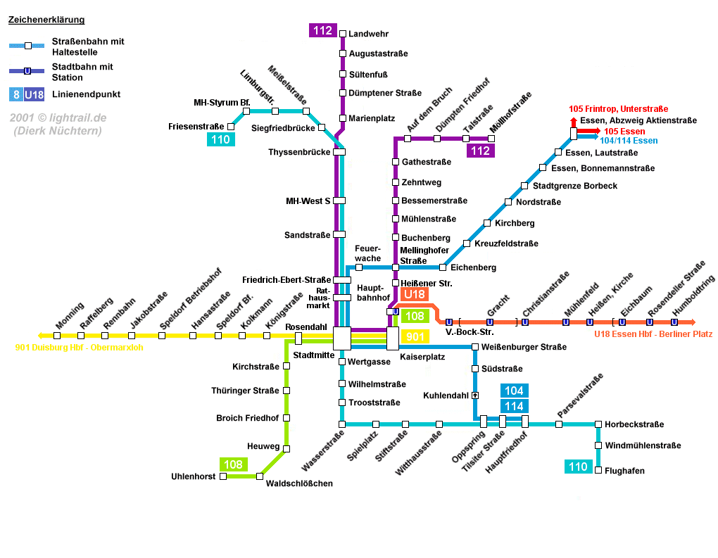 Das Straßenbahnnetz Mülheim/Ruhr im Jahre 1984