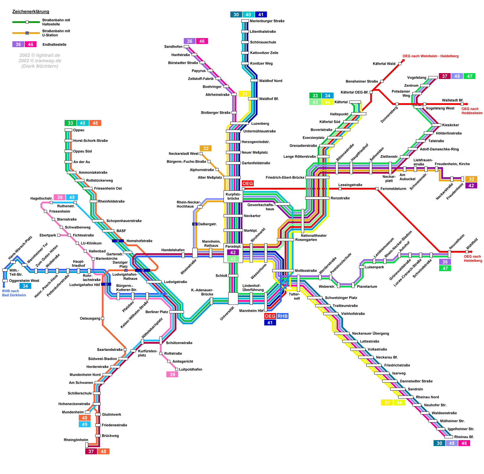 Das Straßenbahnnetz Mannheim/Ludwigshafen 1988/89